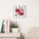 Cottage chic wall clock done in a weathered white washed wood fence look, with graphics of vintage pink peony flowers decorating the middle of the clock. Green numbers for the hours 13, 3, 6, and 9 decorate the outer edge of the clock. Lovely clock that makes a wonderful gift idea.