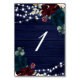 Rustic Wood Marsala & Navy Blue Flowers Table Number