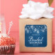 Rustic Bridal Shower square sticker featuring lights in mason jars and strings of lights with the word "Bridal Shower" against a blue wood pattern background. It's the perfect sticker for a rustic or country bridal shower. Check out matching invitation and items like stickers and stamps here https://www.zazzle.com/collections/rustic_wood_mason_jars_and_lights-119202204970019494?rf=238364477188679314