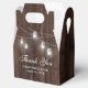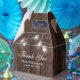 Rustic wood wedding thank you favor box featuring mason jar lights on a barn wood background.