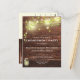Rustic country wedding wood mason jar string of lights tree branch with green leaves wedding engagement party invitation postcard. The glowing string of lights illuminate the green leaves against a beautiful rustic dark brown wood. This rustic wedding design is customizable and perfect for your beautiful outdoor country wedding or western wedding.