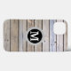 Rustic wood look monogram phone case. You'll love this rustic yet modern trendy look! White monogram letter in black and gray circles and a background of wood slats.