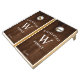 Have fun with this rustic wood background cornhole set. This design features a place for you to put your initial and name.