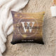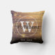 Rustic Wood Monogram Elegant Script Throw Pillow