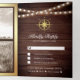 Amaze your guests with this rustic all in one wedding invite featuring beautiful faux gold foil compass with hanging string lights on a vintage barn wood background with detachable RSVP card. Simply add your event details on this easy-to-use template and adorn this card with your favorite photo to make it a one-of-a-kind invitation.
