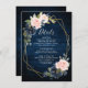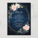 Dark navy blue floral geometric wedding details card featuring elegant bouquet of navy blue, royal blue , white , blush rose and sage green eucalyptus leaves and elegant glitter geometric neutral frame. Please contact me for any help in customization or if you need any other product with this design.