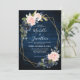Rustic Wood Navy Blue Blush Pink Geometric Wedding Invitation