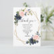 Dark navy blue floral geometric bridal shower thank you card featuring elegant bouquet of navy blue, royal blue , white , blush rose and sage green eucalyptus leaves and elegant glitter geometric neutral frame. Please contact me for any help in customization or if you need any other product with this design.