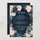 Dark navy blue floral geometric wedding details card featuring elegant bouquet of navy blue, royal blue , white , blush rose and sage green eucalyptus leaves and elegant glitter geometric neutral frame. Please contact me for any help in customization or if you need any other product with this design.