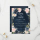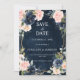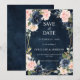 Dark navy blue floral geometric wedding save the date card featuring elegant bouquet of navy blue, royal blue , white , blush rose and sage green eucalyptus leaves and elegant glitter geometric neutral frame. Please contact me for any help in customization or if you need any other product with this design.
