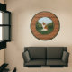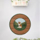Rustic Wood Tone Faux Woodgrain Brown tones Rug with impressionist Painting of a red fox in a mountains and trees landscape. with a hunter-green color accent
