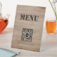 Rustic Wood Pattern Menu QR Code Black Pedestal Sign