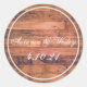 Rustic Wood Personalize Name Date Classic Round Sticker