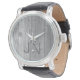 A watch with a silvery grey rustic weathered wood background personalized with your initials makes a great gift for any man. When you personalize the initials leave a space between the initials to get the effect you see in the example.