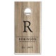 Elegant custom monogrammed cornhole wedding yard game set features modern black monogram text that can be personalized with a last name initial, last name, and year established. The perfect and sentimental keepsake for and after the wedding day, anniversary or any special occasion. A faux wood background adds a rustic textured look to the design. Easy to customize. Get yours today!