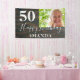 Rustic Wood Photo 50th Birthday Party Banner. Great sign for the 50th birthday party with a custom photo, text in trendy script with a name. The background is dark wood texture and the text is in white color. Personalize the banner with your photo, your name and the age and make your own birthday party banner.