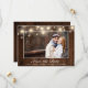 This save the date card features a rustic wood background and string lights it also allows for one photo. Give your guests the feel of your barn, county, vineyard style wedding with this card.