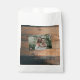 This design features a rustic wood plank background with your personal couple's photo. The rustic brown wooden background is complimented by the white text and your personal photo which is displayed as secured on the wooden background with rustic rusted bolts. The brown tones of the wood grain create a rustic country barn like garden feel. Elegant wedding favor bag design with modern elements. Matching wedding invitations and other stationery items are also available.