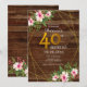 Rustic Wood Pink Floral Gold Glitter 40th Birthday Invitation
