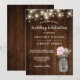 Rustic Wood Pink Peony Floral Mason Jar | Wedding Invitation