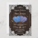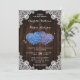 Rustic Wood Purple and Blue Floral Hearts Wedding Invitation