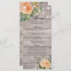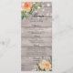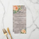 Wedding Menu Rack Cards Templates - Elegant Script with Peach White Roses Floral and String Lights on Rustic Wood Background.