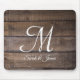 Rustic Wood Script Monogram Name Mouse Pad