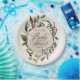 Rustic wood slice baby shower design. With beautiful watercolor foliage, white florals, wood slice and script hand writing. This modern design is sure to set the style for your upcoming party.