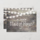 Rustic wood and string lights Will you be my Maid of honor card. An original rustic bridesmaid featuring a vintage gray wood background decorated with string of lights. Perfect card for wedding with night lights wedding theme, barn theme, garden theme, outdoor wedding with twinkle lights.