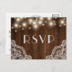Rustic Wood String Lights and Lace | RSVP Meal Invitation Postcard