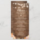 Rustic Wood String Lights Autumn Floral Wedding Menu Card.