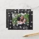 Rustic country photo wedding save the date postcard with glowing strings of white twinkle lights on dark brown barn wood. +++++++++ Easy to personalize with your picture, names, and text! ++++++++++ Suitable for evening lights, farmhouse, woodland destination, or barn wedding celebrations.