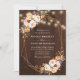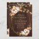 rustic wood string lights fall floral wedding invitation