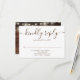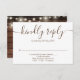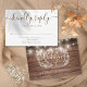 A rustic RSVP card with your details set in chic typography and personalized with your names and hand-drawn floral foliage and string lights on a rustic wood panels background on the reverse. Designed by Thisisnotme©