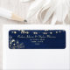 Elegant, modern, rustic wood navy blue wedding return address label with faux gold floral lace and string lights.