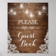 Rustic Wood String Lights Lace Sign Guestbook Poster.