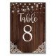 Rustic Wood String Lights Lace Wedding Table Number