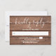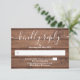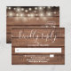 A simple elegant signature script RSVP card with your details set in chic typography and rustic wood panels, string lights and mason jars on the reverse. Designed by Thisisnotme©