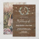 Rustic wood, watercolor leaves, string of lights monogrammed photo wedding invitation.