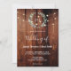 Rustic wood, watercolor leaves, string of lights monogrammed photo wedding invitation.