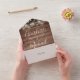 All in one wedding invitation with pretty string lights, signature style names and chic typography on a rustic wood background. The invitation includes a perforated RSVP card that can be individually addressed or left blank for you to handwrite your guest's address details. Designed by Thisisnotme©