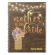 Help keep mom organized! Rustic notebook features a photorealistic dark wood background, string lights and a mason jar stuffed with pastel flowers. Personalized.