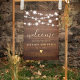 Rustic wood string lights photo wedding welcome with real gold foil.