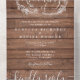 All in one wedding invitation featuring pretty string lights, a hand-drawn floral garland and chic typography on a rustic wood panels background. The invitation includes a perforated RSVP with your wedding website QR code and details. Designed by Thisisnotme©