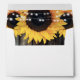 Rustic wood and sunflower envelopes with a return address featuring sunflower flowers and string lights on a rustic wood background. Matching items available.
