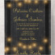 Elegant rustic country autumn fall outdoor backyard wedding stylish all in one invitation template on dark brown barn wood featuring strings of twinkle golden lights and a chic faux gold calligraphy script.