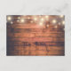 This rustic wood detail enclosure card features string lights.
