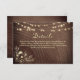 Add essential wedding info with this rustic wood details card featuring cozy string lights and delicate gold floral lace. Perfect for sharing accommodations, wedding websites, reception directions, or RSVP details. Elegant yet bohemian, it complements fall weddings with a barn, country, or vintage style.