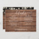 An elegant string lights wedding details information enclosure card personalized with your special details set in stylish typography and your names and wedding date on the reverse on a rustic wood background. Designed by Thisisnotme©