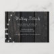 Rustic country dark barn wood evening string lights wedding guest information accommodation directions website enclosure card.